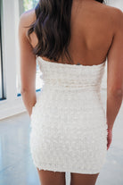 The Lainey Mini Dress is a playful blend of elegance and fun. Featuring an ivory mesh tube silhouette, it hugs your curves with a bodycon fit. Sparkling sequin beads add a touch of glamour, while the shirred, ruched bust detail enhances your shape. A delicate floral print underlay peeks through, giving this mini dress a flirty, feminine vibe perfect for any lively occasion.