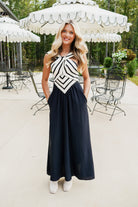 Elevate your summer wardrobe with the Livie Maxi Dress! This playful sleeveless dress features a chic halter neckline and a stripe bodice detail that adds a fun, flirty touch. Its flowing maxi length creates effortless elegance, perfect for beach days or evening strolls. Feel breezy and stylish all day long with this must-have dress.