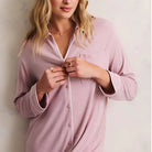 BAREFOOT DREAMS Luxe Milk Jersey Sleep Shirt w/ Piping - Teaberry