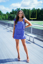 Make a statement in the Talya Dress! Featuring a dark blue hue and a unique square neck design, this dress is perfect for any occasion. The crochet lace texture adds a touch of elegance, while the tie up shoulder straps allow for a customizable fit. Stay on trend with this mini dress!
