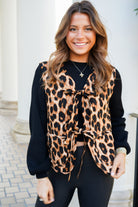 Experience fierce and stylish comfort with our Tatum Vest Top! Designed with a leopard print, this sleeveless top features a bow tie front closure and convenient side pockets, making it perfect for any occasion. The rounded bottom hem adds a touch of sophistication to this versatile piece.