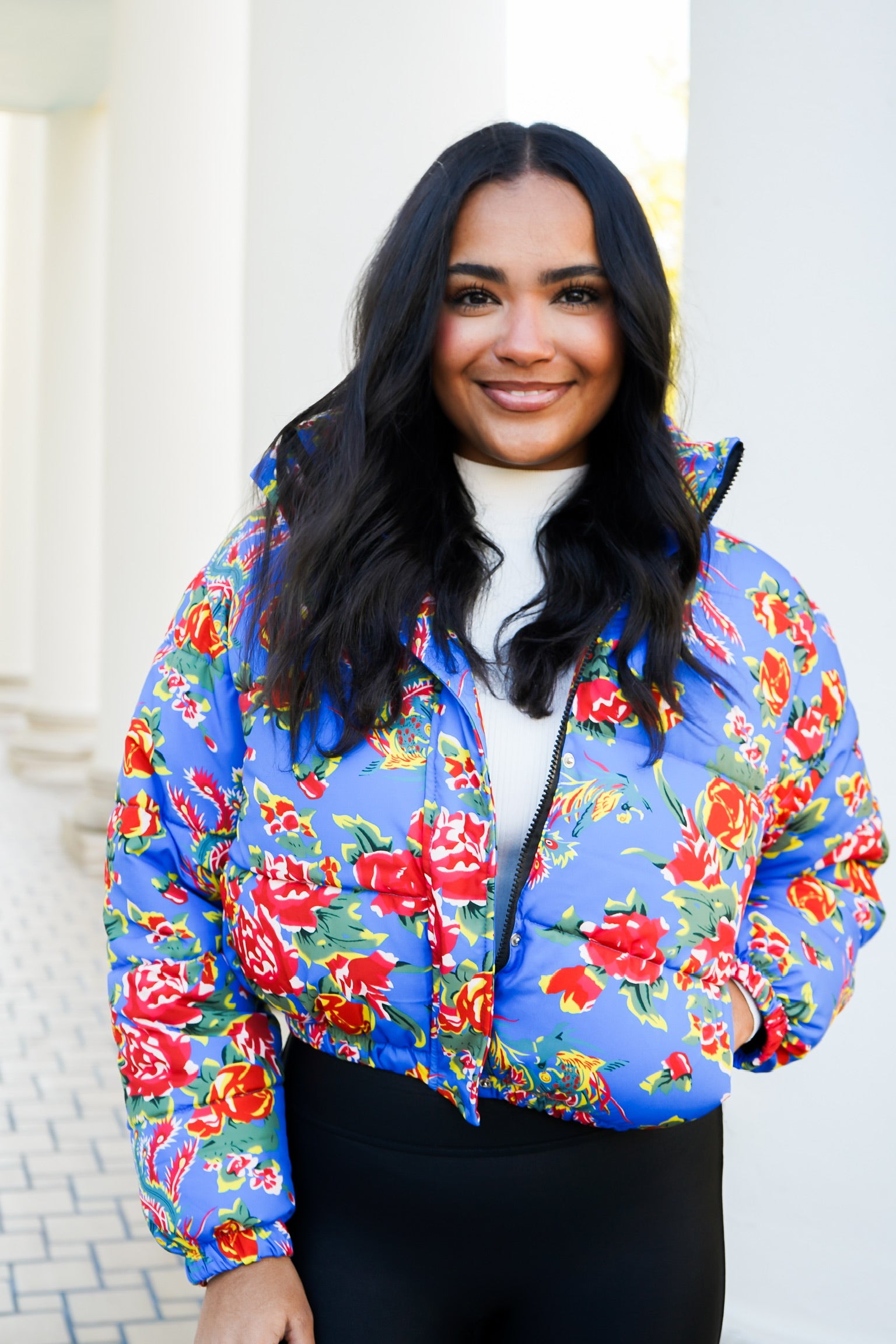 Stay stylish and warm this winter with our Wilda Jacket in beautiful floral print! The high collared neckline and full front zipper provide added protection against the cold, while the silver snap button closure adds a touch of elegance. Fashion meets function in this must-have puffer jacket!