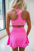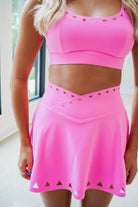 Gear up for victory on the court or trail with this high-rise tennis skirt featuring comfortable inner shorts and a flattering V-waist. Designed with fashion-forward laser-cut details, this skirt is perfect for matching with your favorite sports bras. Get ready to dominate your next match or run in style and comfort.